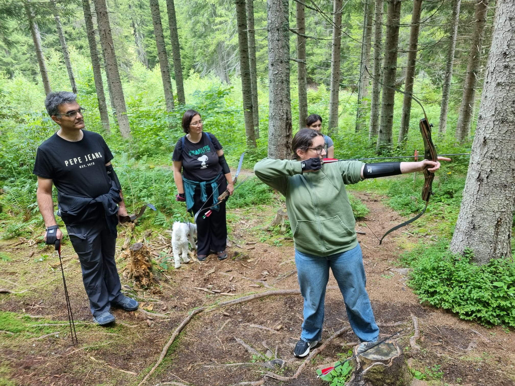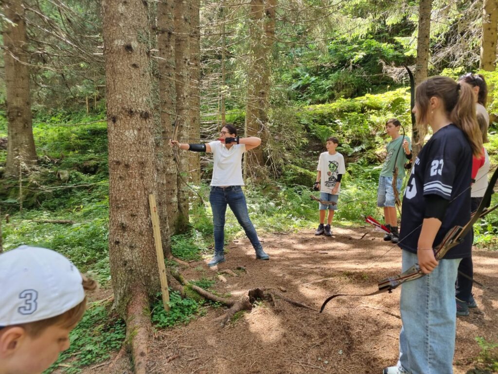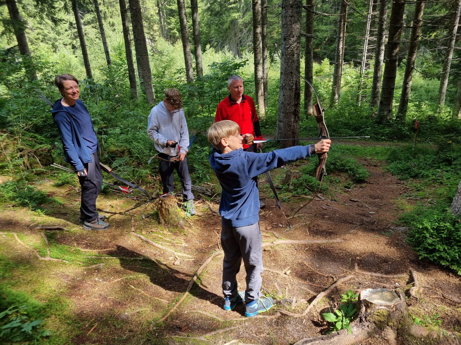 Our “Bow Park” with an exciting course is waiting to be discovered by you in the woods near Cavorgia. A trip to the “Bow Park Uaul Cavorgia” is also perfect for team building, family or club outings. An introduction to archery can also be perfectly combined with our other offers, such as a tour of the Adventure Rope Park “Curtin Medelin” or building a Nepalese bridge. We are also happy to offer a complete program with an apéro and specialties from the grill for company events. Group outings to the “Bow Park Uaul Cavorgia” can be booked for groups of twelve or more. We also gladly accept bookings from families and individuals.