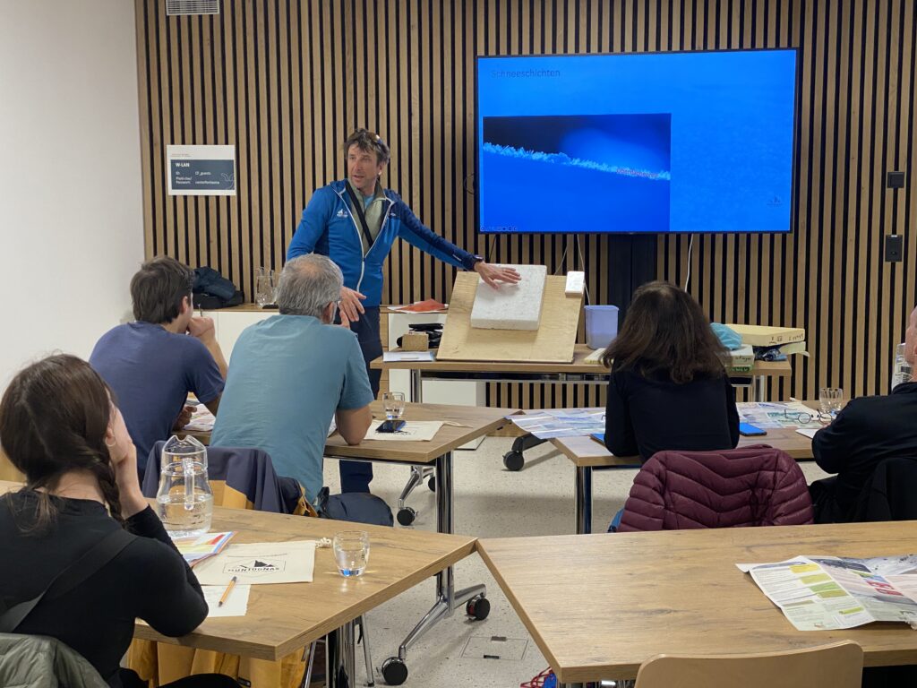 Mit Schnee kennen wir uns aus. Otti Flepp ist nicht umsonst bereits seit vielen Jahren in den Wintermonaten auch für die Sicherheit der Lukmanier-Passstrasse verantwortlich. Täglich prüft und beurteilt er hier die Schnee- und Lawinensituation und entscheidet, was nötig ist, um eine sichere Verbindung zwischen Graubünden und dem Tessin zu garantieren. Dazu kommt seine Erfahrung als Bergführer, der den ganzen Winter in den Bergen unterwegs ist. Ziele dieser eintägigen Ausbildung sind eine fachkundige und richtige Interpretation des Lawinenbulletins, das Verständnis für den Aufbau von Schneeschichten und eine konkrete Anleitung für die Risikoabschätzung und Planung der Skitour – und die Entscheidung zu gehen oder nicht zu gehen.